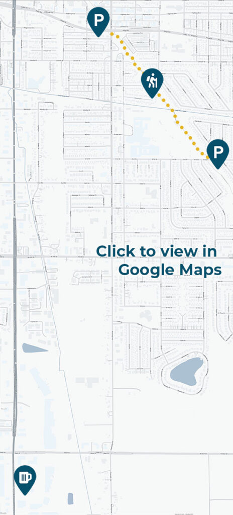 Parking can be found at the public lot at Kennedy & Highway, the small lot under the Ridge Rd. overpass, or at the trail lot located at 45th St.